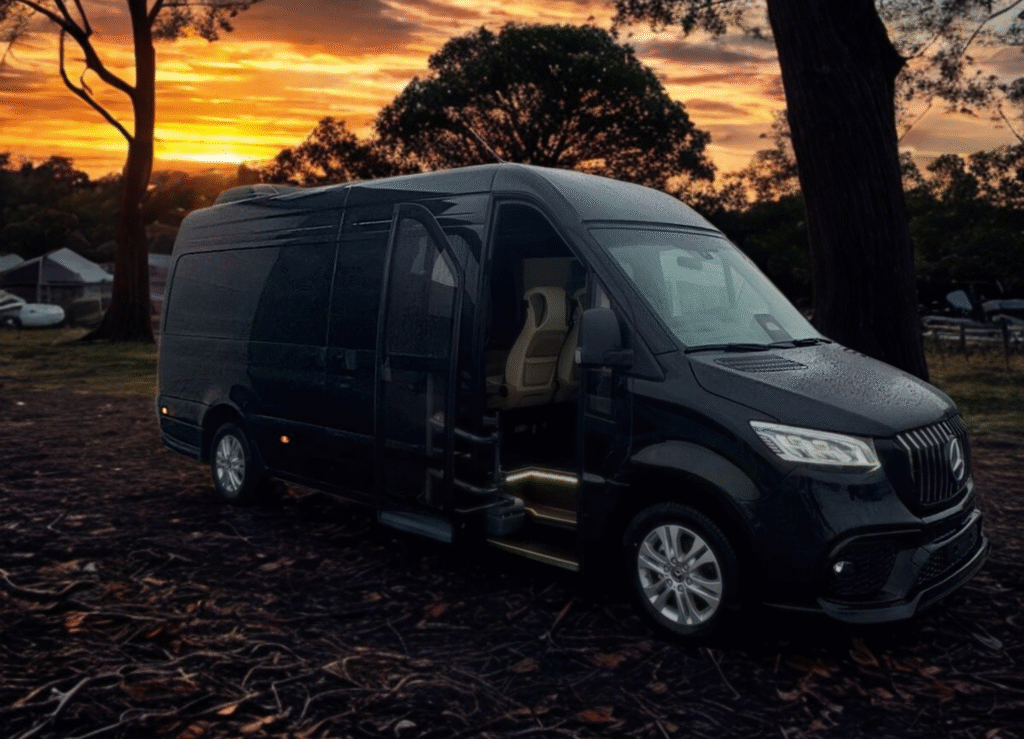 Le Sprinter 9 places affiche une silhouette moderne et robuste, parfaitement adaptée aussi bien au transport de passagers haut de gamme qu’aux déplacements collectifs et disponible en porte coulissante ou louvoyante