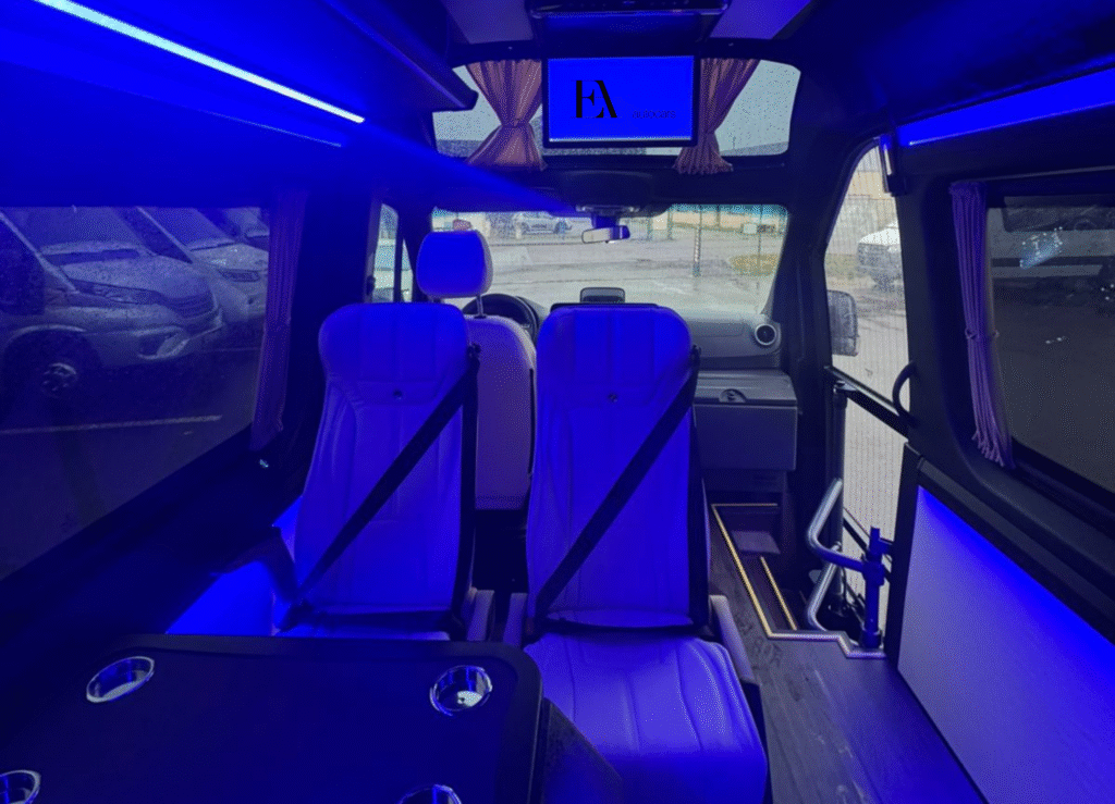 Parfait pour les agences de voyages, hôtels, associations sportives ou entreprises, le Sprinter 9 places est la référence pour transporter vos passagers en toute confiance et avec élégance